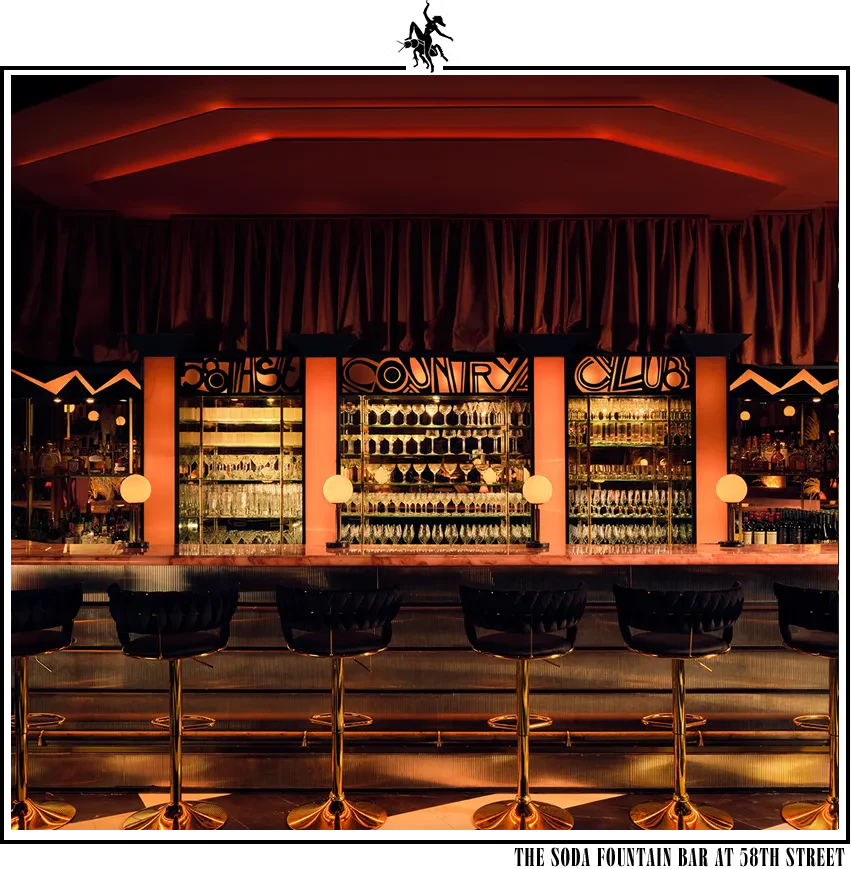 58th Street is home to the infamous Soda Fountain Bar, serving a menu of Club Classics - Martinis, Clover Clubs, Swizzles, and the like. The motto here is elegant and perfected - done always in the old style. This is New York, after all, the cradle of mixology.